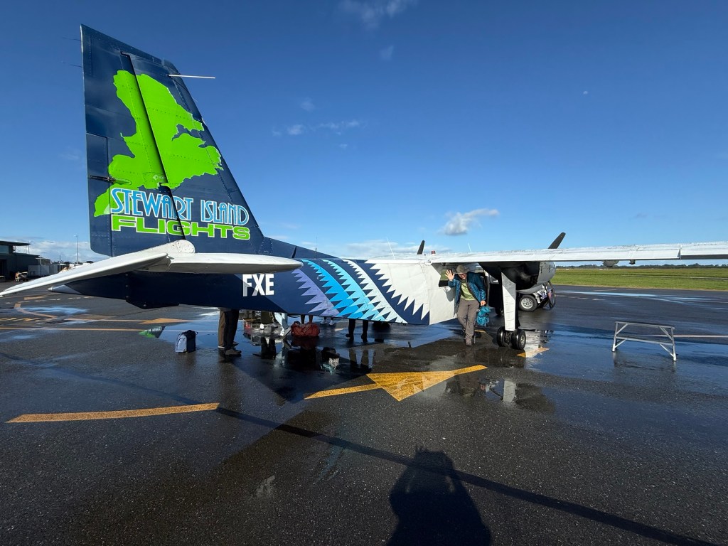 Flying in New Zealand is nothing like flying in the US, and we mean that as a compliment. We left Stewart Island on a sunny morning on the same kind of nine-seater that brought us over, then caught a connecting flight from Invercargill to Christchurch on a prop plane with about fifty seats. There was no real security line to speak of. I had a couple of bottles of wine in my carry-on and nobody blinked. Everyone queued politely, boarded calmly, and that was that. Renting and returning cars works the same way — drop it in the lot, leave the keys in a box, done. The whole system runs on a kind of good-faith handshake that would never survive five minutes in a US airport.