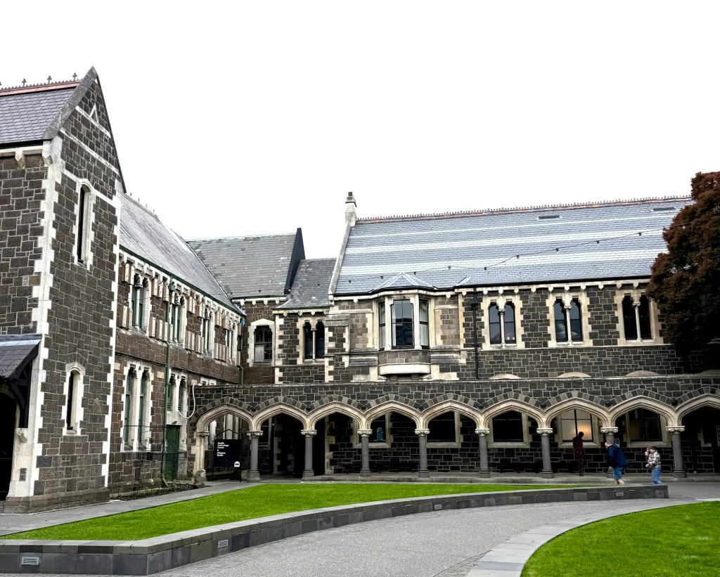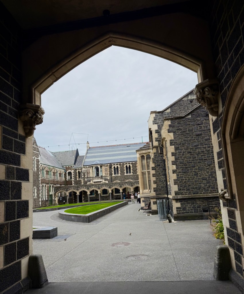 On the way, we passed the Arts Centre — Te Matatiki Toi Ora — housed in what was once Canterbury College. It’s New Zealand’s largest collection of heritage buildings, and many are still being carefully rebuilt after the 2011 earthquake. Seeing scaffolding wrapped around Gothic stone buildings is a strange sight, but also a reminder that the city is still finding its feet.