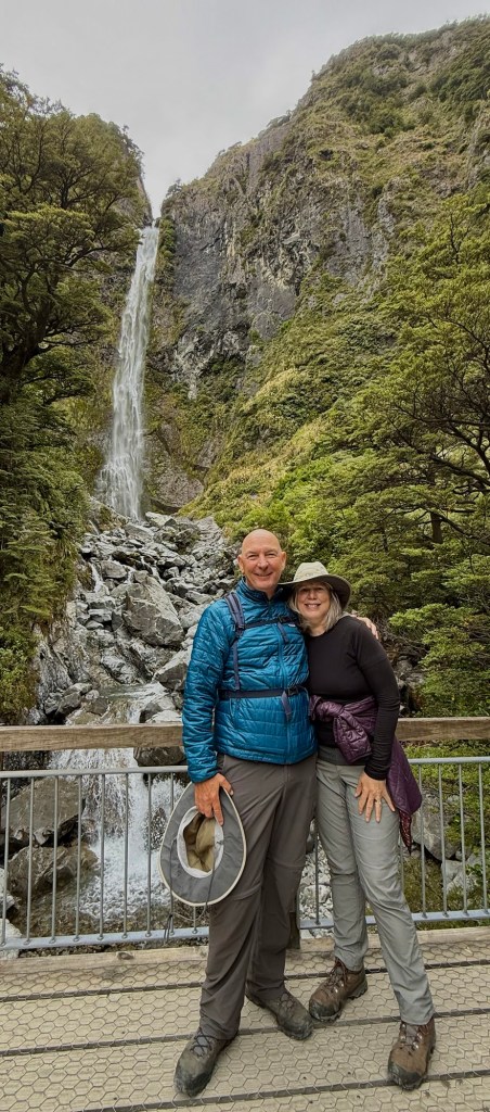 Further along, we stopped at the Devil’s Punchbowl — a nearly 400-foot waterfall reached by a short track from the road — then continued to the Otira Viaduct lookout. The viaduct itself, completed in 1999, is 440 meters long and replaced a section of road through the Otira Gorge that was prone to avalanches and closures. Standing at the lookout above it, the whole gorge opens up below you and the bridge looks almost elegant for something built entirely out of engineering necessity. It’s the kind of stop that sneaks up on you.