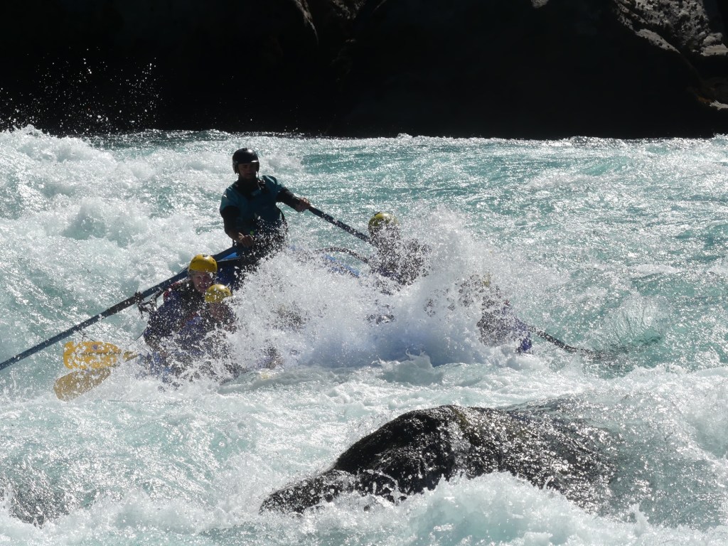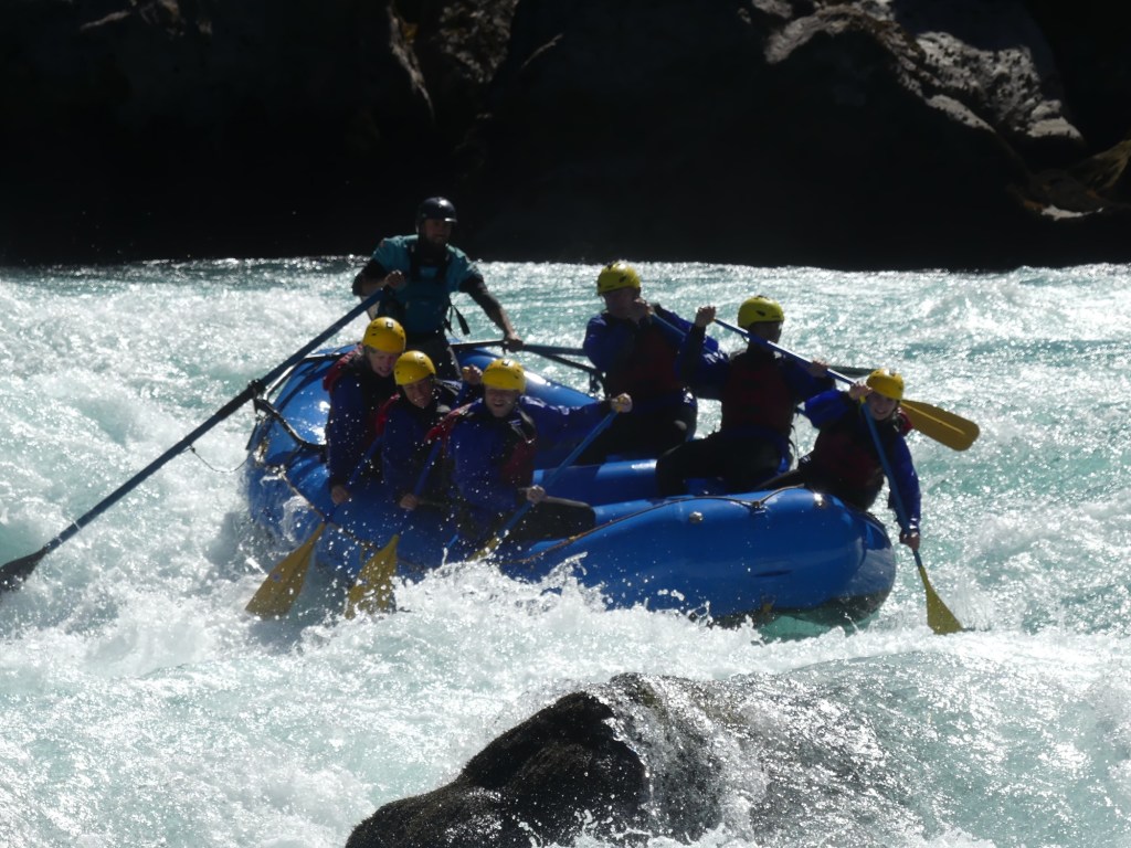 We’d rafted whitewater before, but from the first rapid, it was clear this was a different level. Our guide led us through tight maneuvers—diving to the floor of the raft to stay in, jumping to the opposite side to keep it from flipping. The rapids required precise execution, with clear instructions on how to get through safely. There were more than a few instance where our raft was vertical, water going crazy all around us. The photographer captured a full sequence on one rapid—entering, navigating, emerging on the other side.