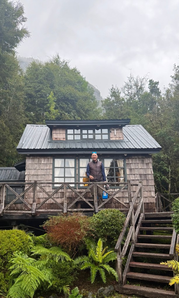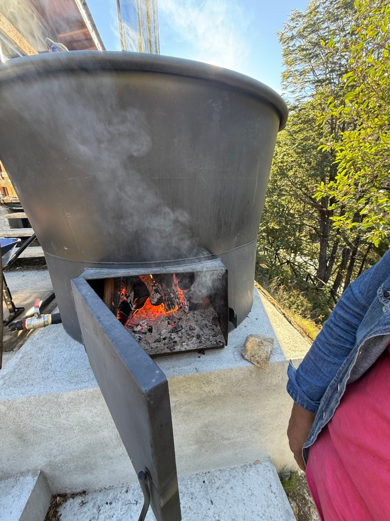 We stayed in a house on the Río Espolón, a fast-moving river too shallow for rafting but perfect for falling asleep to. The owners had built two decks—one behind the house overlooking the water and another right at the river’s edge. One evening, the caretaker, Marisa, fired up the wood-burning stove to heat the steel hot tub, and we soaked under a sky so clear we could see the entire Milky Way. Like most places in Chile, there were dogs—usually border collies—always eager to tag along on our walks. Pete was taken with every one of them, and they rarely left our side, trotting ahead on hikes, tails wagging nonstop.