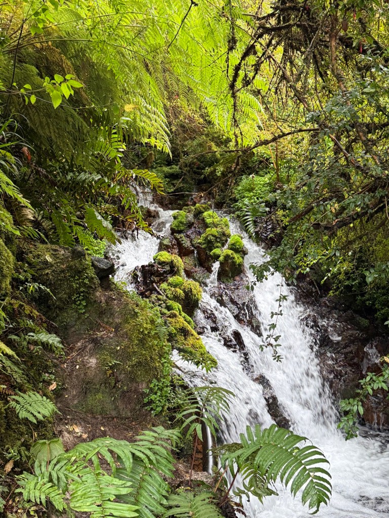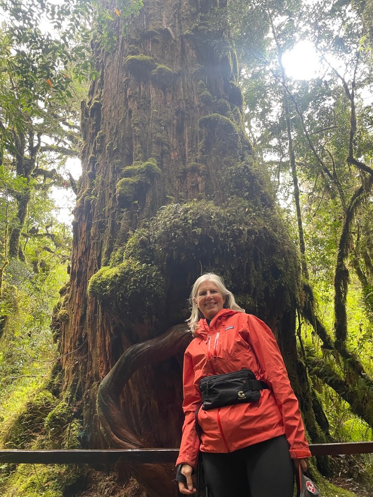 After bumping along the crazy potholed road leading out of Caleta Gonzalo, we were ready to stretch our legs, so we set out on the Los Alerces trail, one of Pumalín’s most stunning hikes. The path wound through an ancient rainforest, where giant Alerce trees—some over 3,000 years old—stood tall along the trail. As we hiked, we passed rushing streams, tons of ferns, and jagged peaks through the treetops. The trees were magnificent, and the quiet of the rainforest was just what we needed.