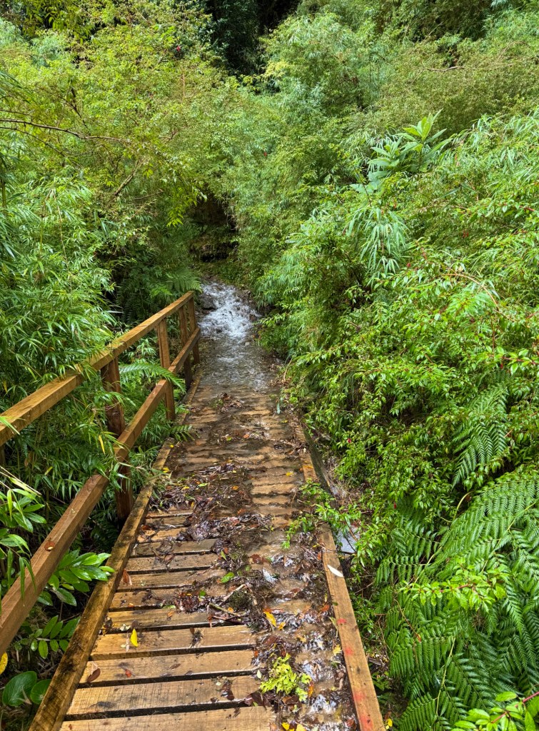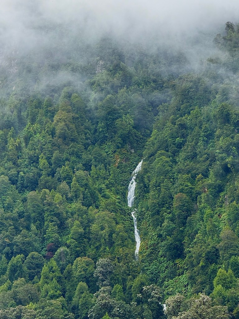 A three-hour drive south brought us to Puyuhuapi, next to Queulat National Park. The main draws here are the Ventisquero Colgante, or hanging glacier, and the Enchanted Forest. The forest trail was closed due to a landslide, but we were still able to hike up a steep, muddy slope—with some sections of stairs—to reach a great viewpoint of the glacier. We didn’t see anyone else on the way up, took plenty of photos at the top, and then carefully made our way down, trying to avoid slipping in the deep mud. At the bottom, we followed a well-maintained tourist path to another viewpoint, but it didn’t compare to what we had seen earlier.
