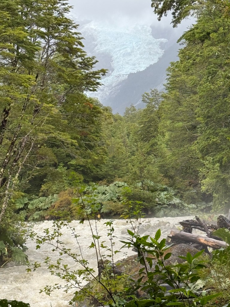 After an overnight downpour, we set out for the trail by the hanging glacier along the Yelcho River, expecting mud but finding the path flooded, even the walkways underwater. As we hiked, we heard what sounded like thunder rolling through the valley. A pair of campers told us it wasn’t the sky—it was boulders tumbling down the river, carried by the force of the water. The trail wound through thick forest, ending with a wide, open view of the glacier. Wet boots, muddy clothes, and all, it was worth it.