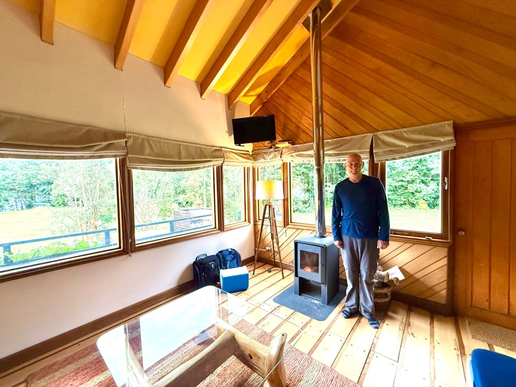 The following two nights were spent lakeside between two national parks at a premier fly-fishing resort—pure bliss. Our three-story, two-bedroom, two-bathroom cabin (the only one available, and we’re not complaining!) has a wood burning stove and views of the stunning Laguna Yelcho. What a dream!