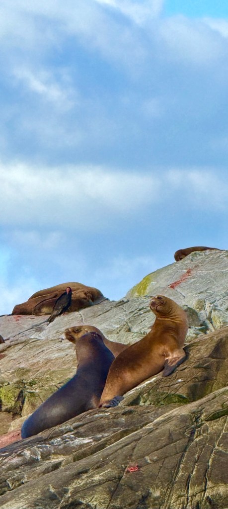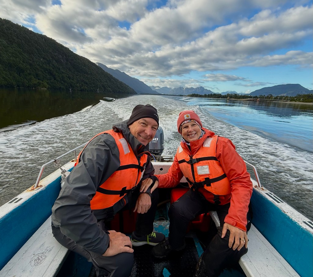 After leaving Lake Yelcho, we detoured to Puerto Raúl Marín Balmaceda, a remote village of 300 people. The turnoff from Ruta 7 led to a 36-mile gravel road that took two hours to drive—one lane, full of potholes, blind curves, with no one behind us and only two cars passing us in the other direction. Along the way, we passed waterfalls, spotted a huemul—a small, elusive deer—and drove beneath towering cliffs.