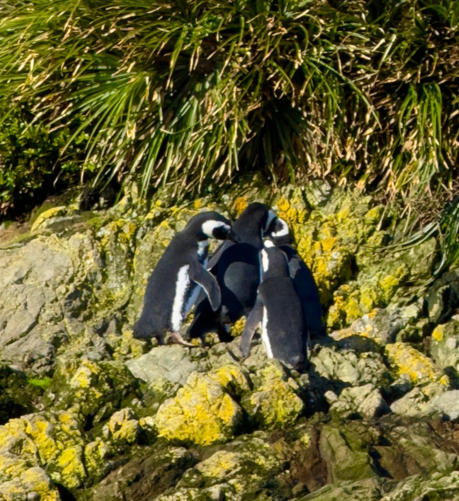 The highlight came at sunrise when we set out on a small boat toward a cluster of rocky islands in the Pacific. The islands were covered in green vegetation and bright flowers, an unexpected contrast to the rugged coastline. The islands teemed with life—sea lions basked on the rocks, penguins tended to their young, Chilean geese floated in pairs, and cormorants filled the treetops. A pod of dolphins swam alongside our boat. For two hours, we circled the islands with the open ocean behind us before turning back toward the village and retracing our slow, winding route to the highway.