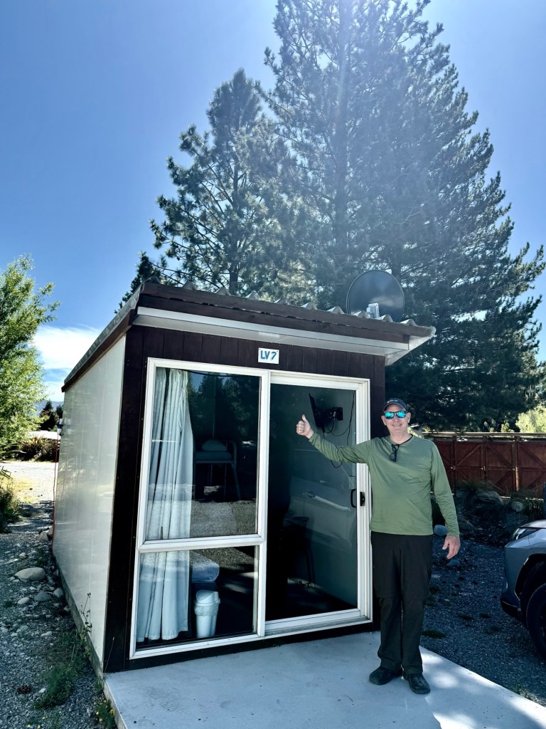 We settled into Twizel at the Lake Ruataniwha Holiday Park, which we will describe generously as no-frills. Our shipping container had three beds and shared bathrooms, and honestly it didn’t matter one bit. The lake just outside was a stunning glacial blue, and we were four minutes from High Country Salmon, a salmon farm that uses Twizel’s pristine glacial waters to raise what turned out to be an extraordinary dinner. The blue cod from Kiwi Fish and Chips food truck the following evening was equally memorable — simple, fresh, and served by people who were genuinely proud of what they were putting on the plate.