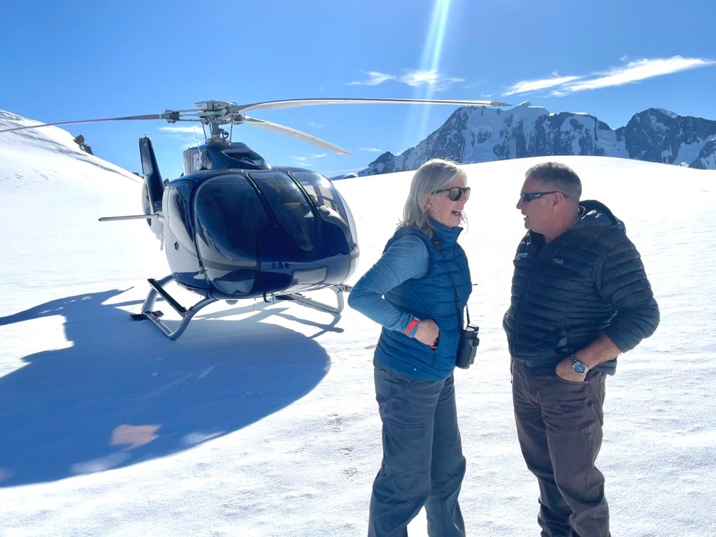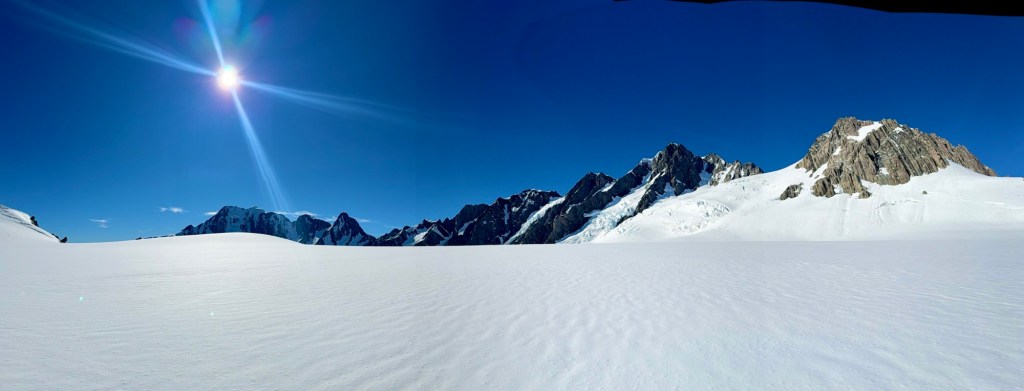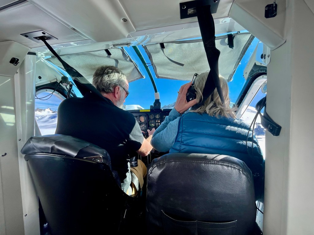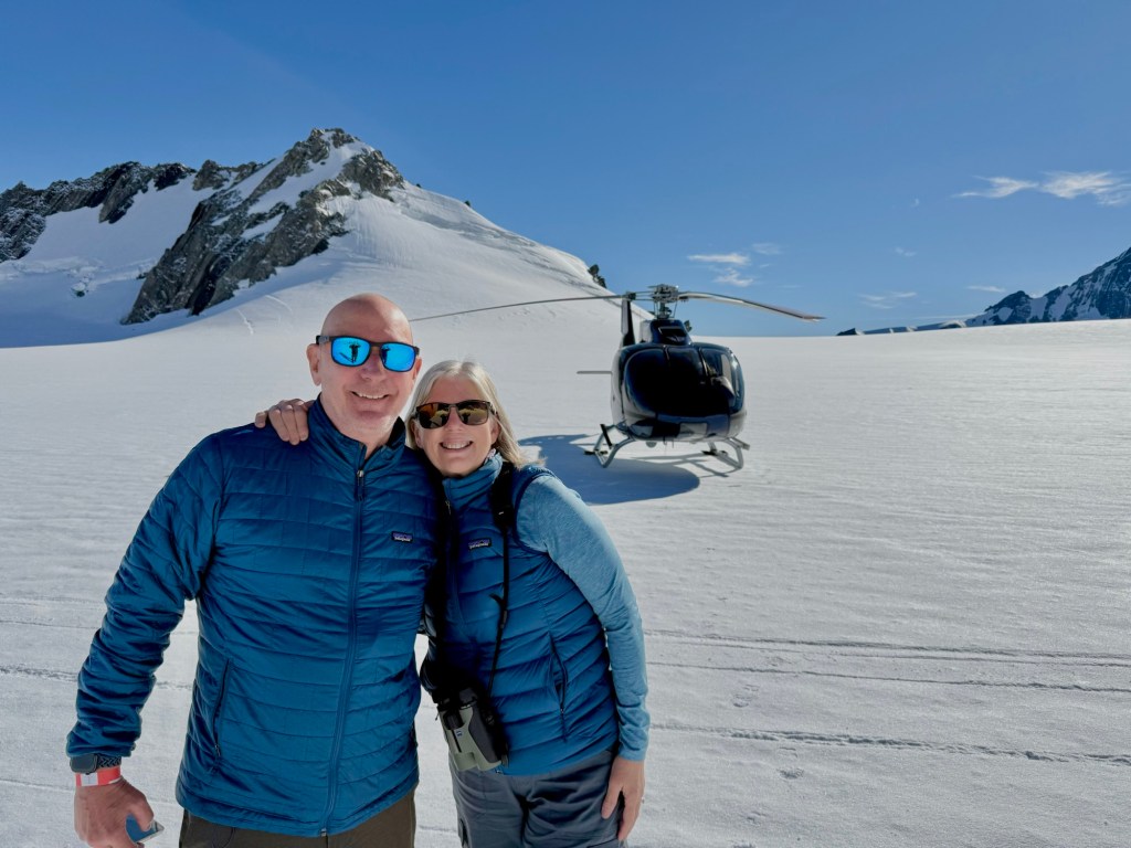 The day at Mount Cook started before sunrise. We had pre-booked a helicopter and small prop plane combination flight to the Fox Glacier, and luck handed us perfect conditions — bright sun, no wind, and a pilot named Mark who threaded us between mountains like it was the most natural thing in the world. We landed on the glacier, stepped out into that vast white silence, and then climbed into a small prop plane for the ride back. Pete and I were both quietly pinching ourselves. There are experiences that you plan for and hope will deliver, and then there are the ones that exceed every expectation. This was one of those.