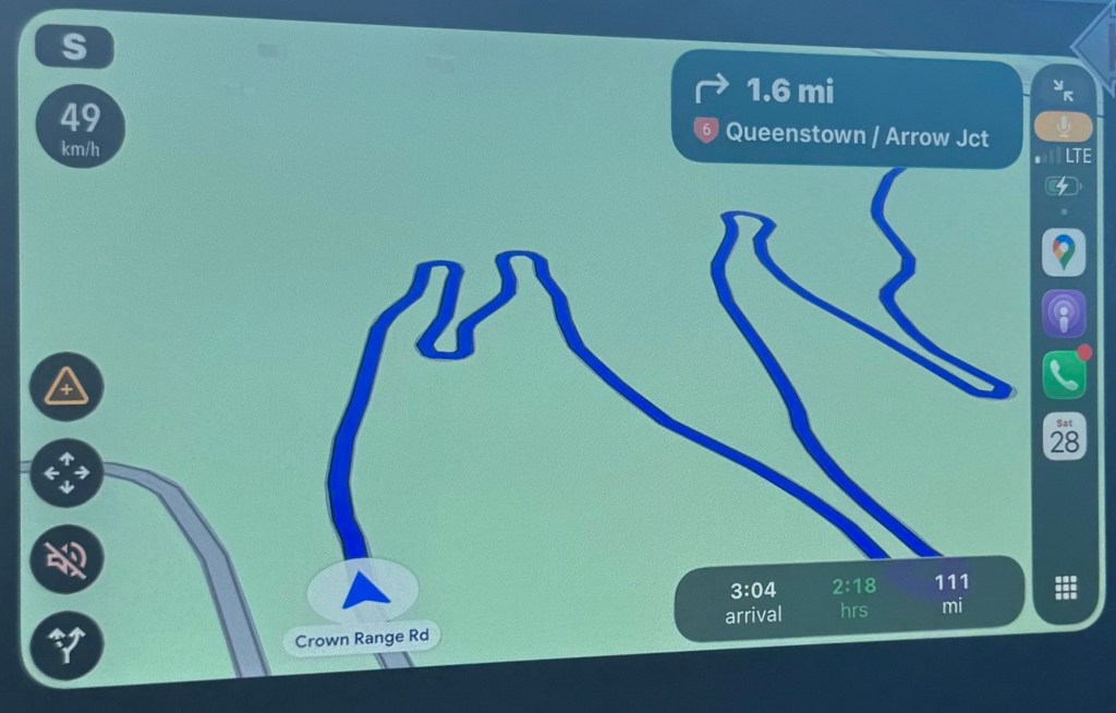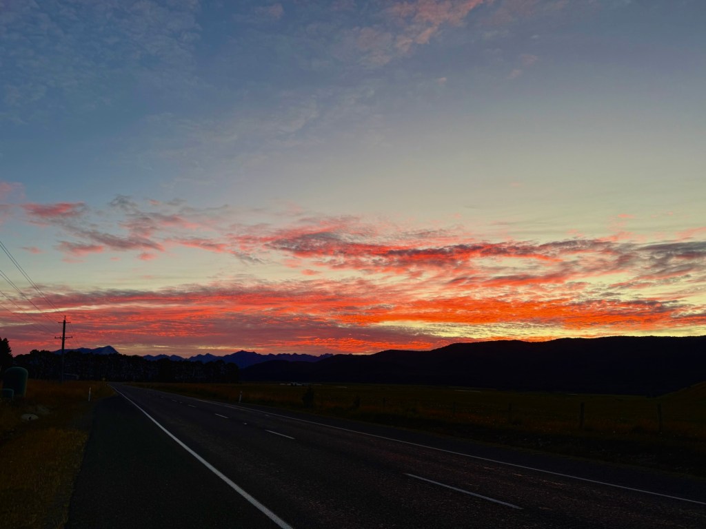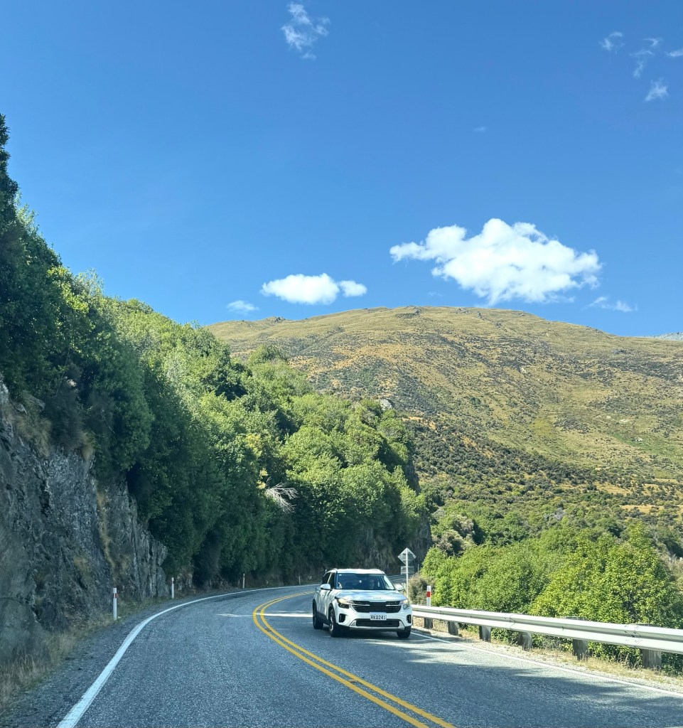 We left Wanaka early to tackle the Crown Range Road back toward Queenstown. Members of the New Zealand Travel Tips Facebook group (NZTT) had flagged it as one to take seriously — steep drops and hairpin turns that reward good conditions and punish bad ones. We had sun, dry pavement, and no wind, so we went for it. It was a genuinely fun drive, and it opened up the wide landscape of Central Otago in a way the main highway just wouldn’t have.