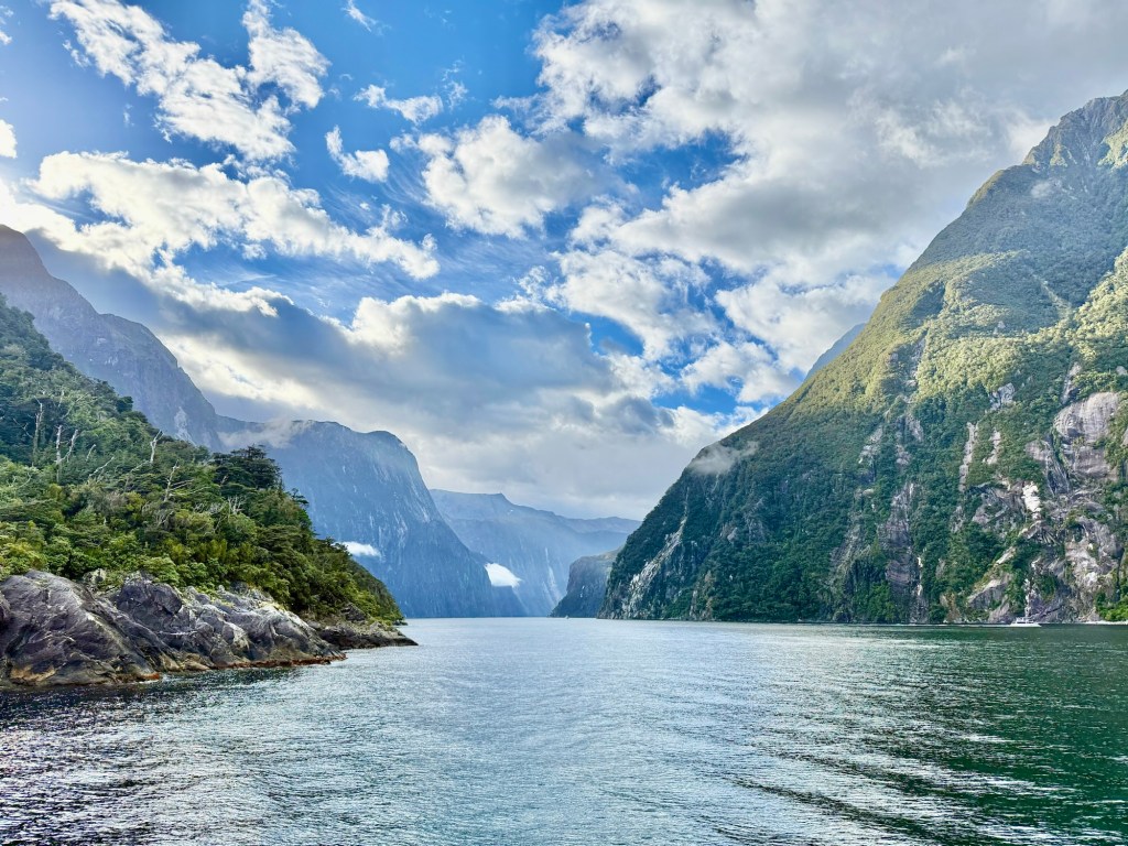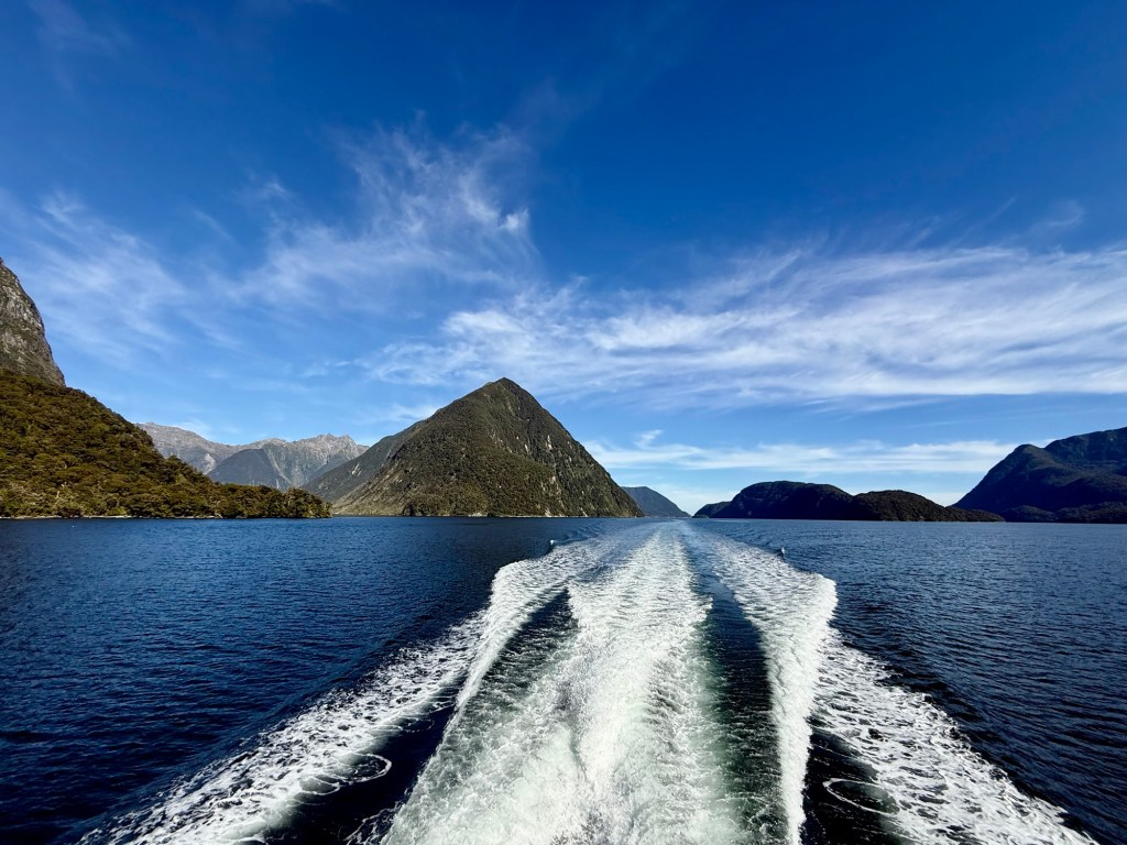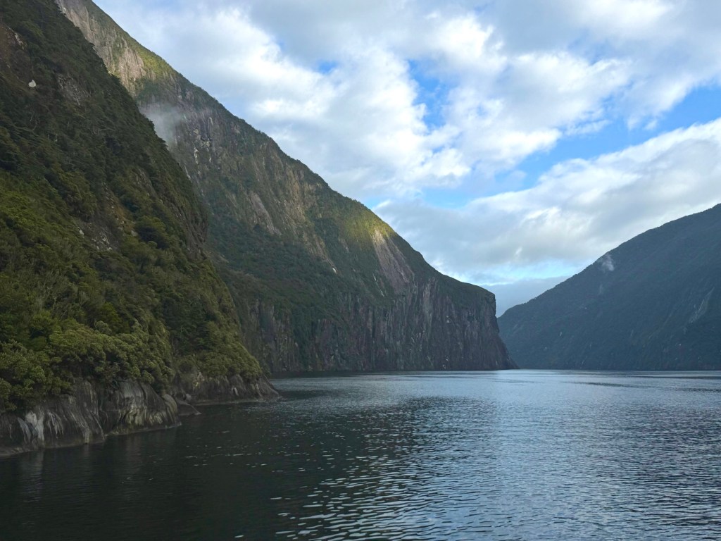 The following morning involved a bit of an expedition just to reach Doubtful Sound: a boat across Lake Manapouri, then a coach, then the ship. The sound itself is quieter and more remote than Milford, and we were glad we made the effort. If you’re visiting Fiordland, doing both cruises is worth it.