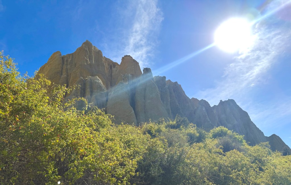 Before we left Twizel, our Wanaka Airbnb hosts Grant and Christina pointed us toward the Clay Cliffs, and it turned out to be one of those tips you’re really glad you took. We drove down a rough gravel road, walked through a narrow slot canyon, and came out into a valley filled with tall sandstone columns that were a complete surprise. The sky was perfectly blue that day and the whole place felt a little surreal. We took a lot of pictures.