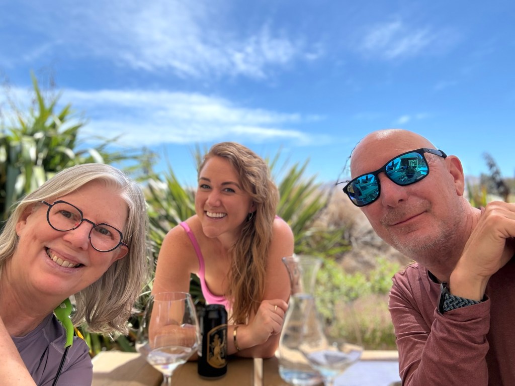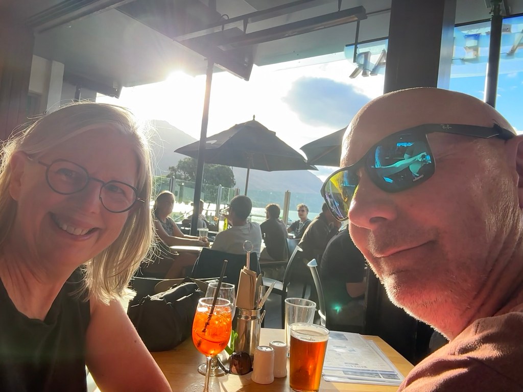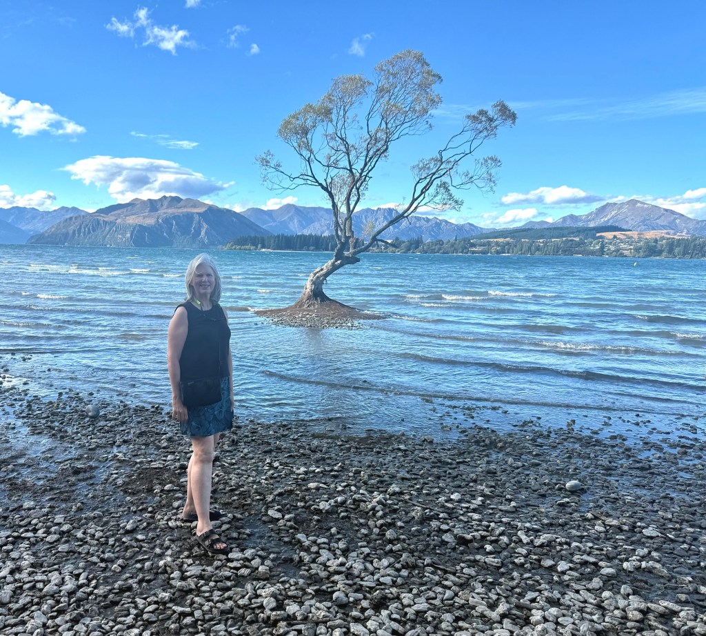 “That Wanaka Tree,” a small tree that’s on all the travel websites, lives up to its reputation. It’s a single willow growing out of the lake, and yes, everyone photographs it, and yes, we did too. The lake was beautiful — bright blue with white sails on the far shore — and we could have stood there for hours. Later that evening we chatted with our AirBnB hosts, Grant and Christina, and heard about their travels and their life in New Zealand, toured their spectacular garden, and by the end of it we felt like old friends.