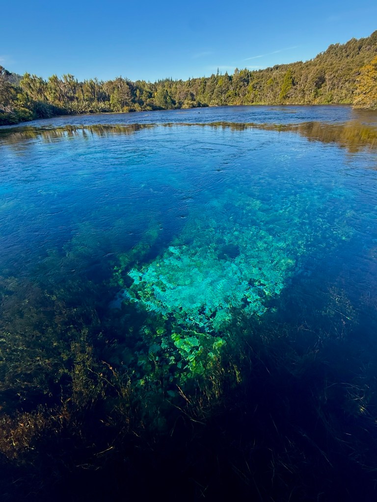 Leaving Abel Tasman, we made a short detour southwest of Nelson to visit Te Waikoropupū Springs, known locally as Pupu Springs. The name translates to “place of the dancing sands,” which refers to the vents, where the force of the water pushes up through a white sand floor and makes it look like it’s moving. These are the largest cold-water springs in the Southern Hemisphere, and the visibility through the water is significant — approaching optically pure. The only water on record clearer than this is at the Weddell Sea in Antarctica. You cannot touch it, swim in it, or even dip a finger in — the springs are sacred to Māori, and have been protected from any contact since 2007. A short boardwalk loop through native rimu and kahikatea brought us to a viewing platform, and we stood there looking down into water so clear it looked edited. It’s a stop that takes maybe forty-five minutes and yet the memory will stay with us much longer.