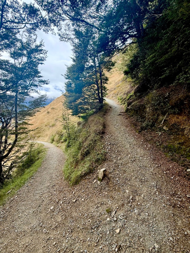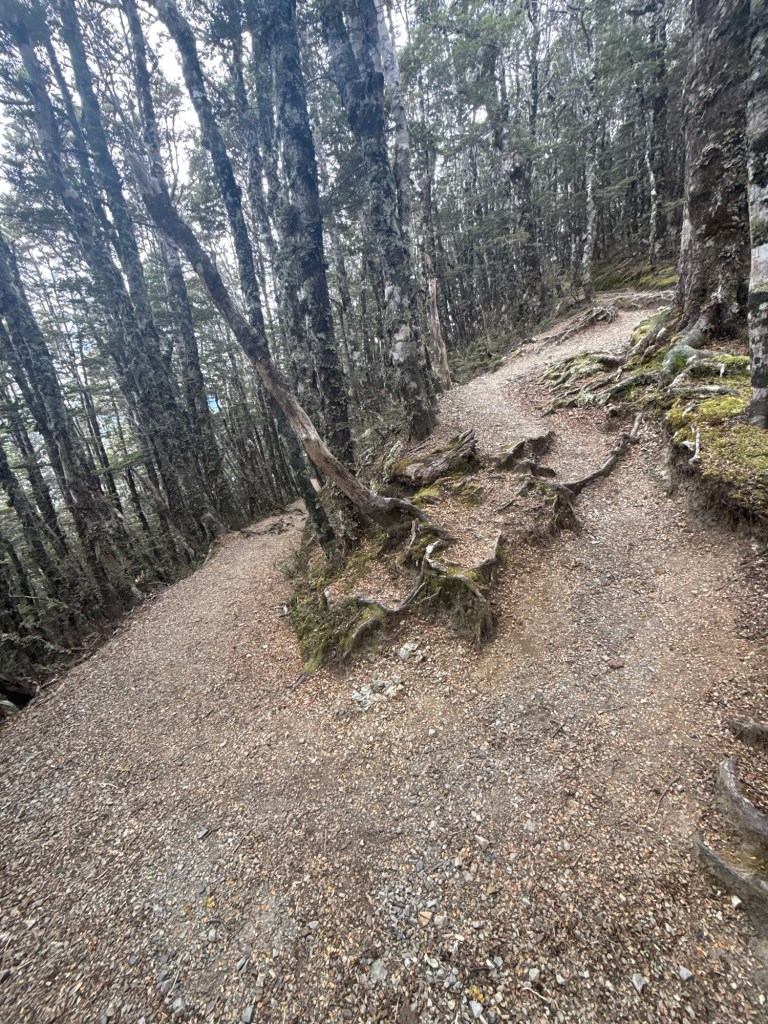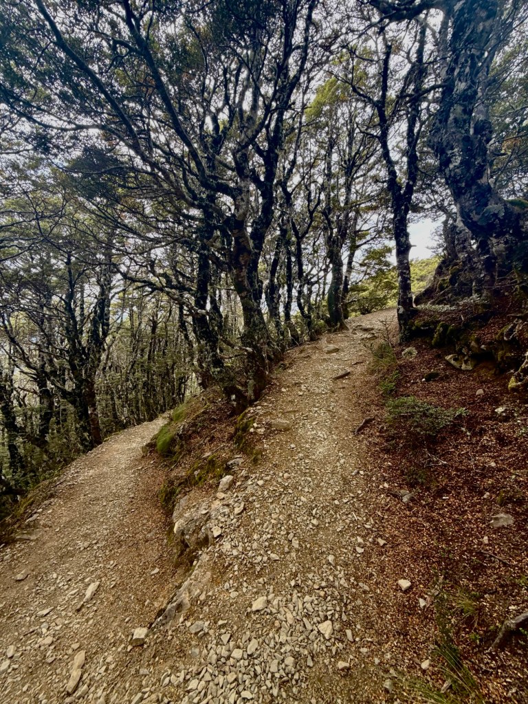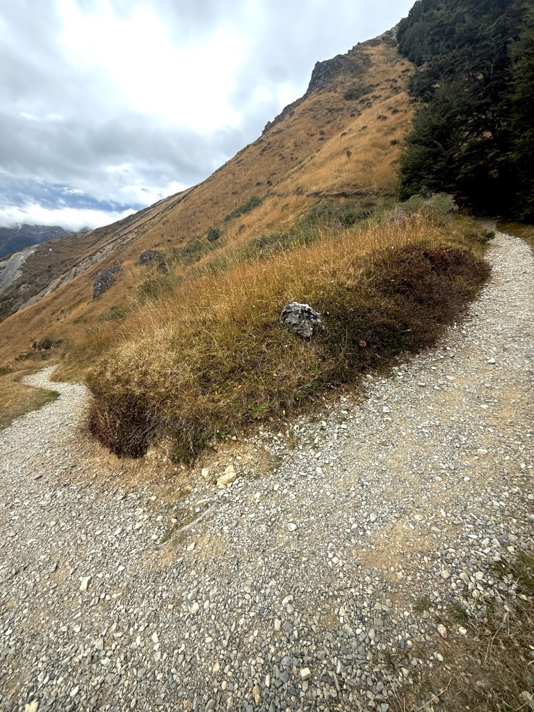 It wasn’t our most scenic day on the South Island — the weather saw to that — but there was something very peaceful about having the mountain mostly to ourselves, in the mist, working through all twenty-nine of those switchbacks without anyone to compare notes with. The whole circuit took us the better part of the day.