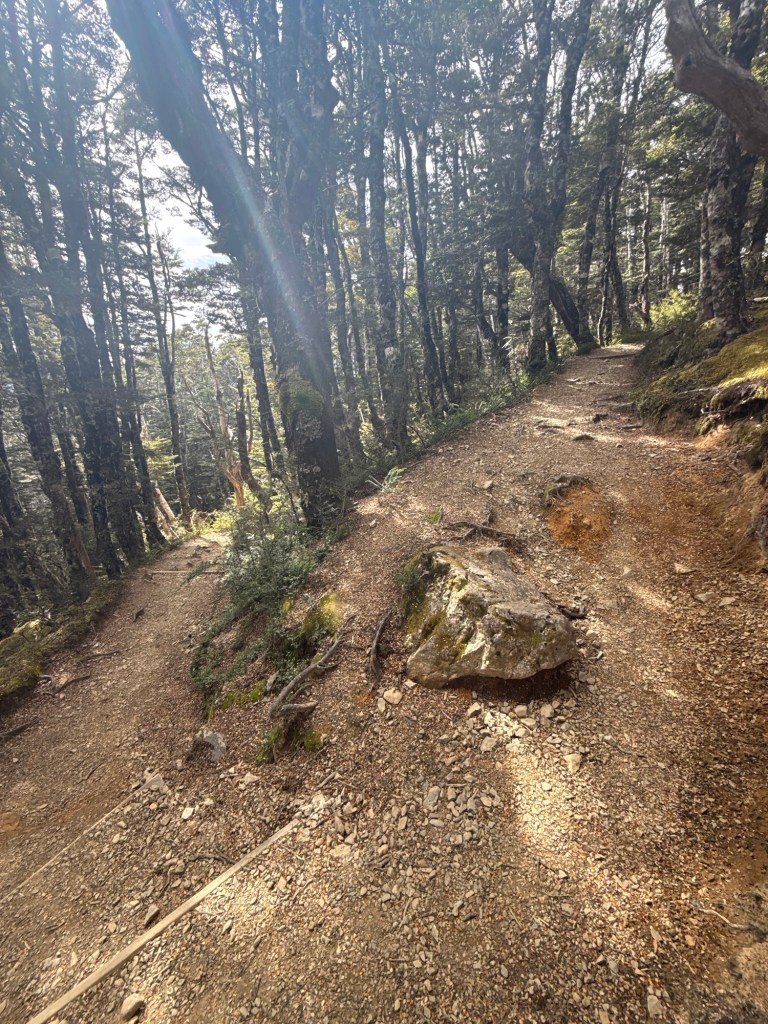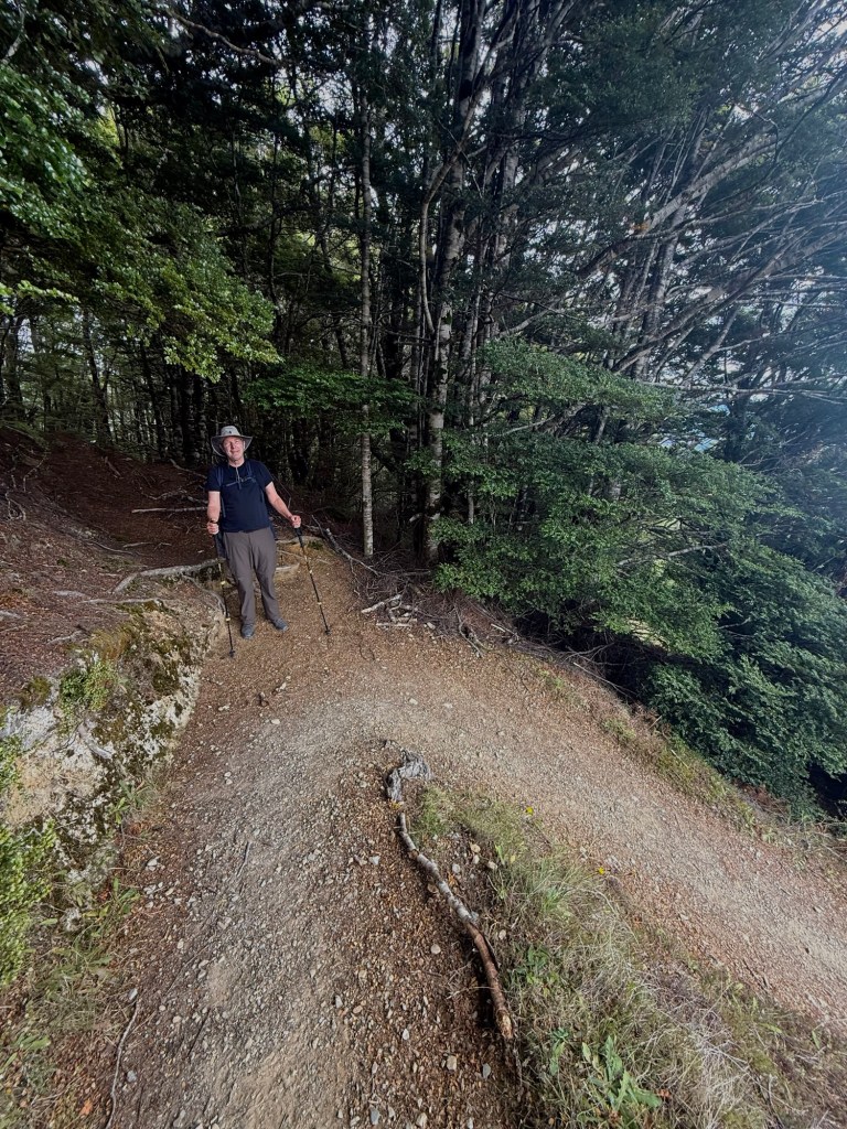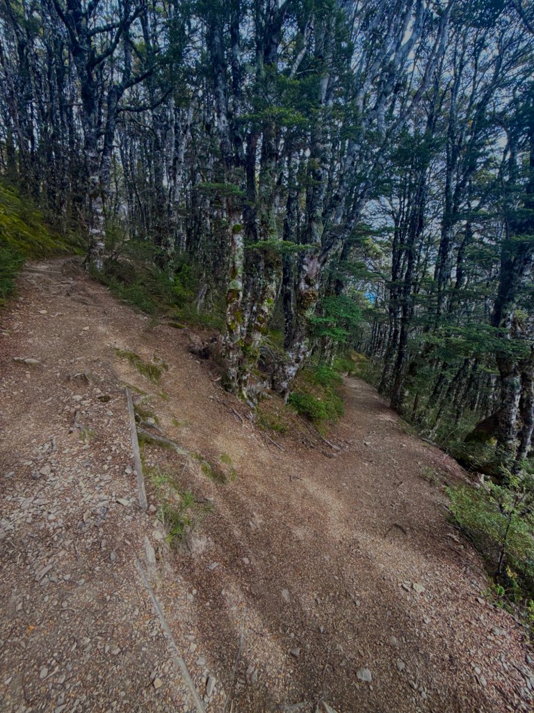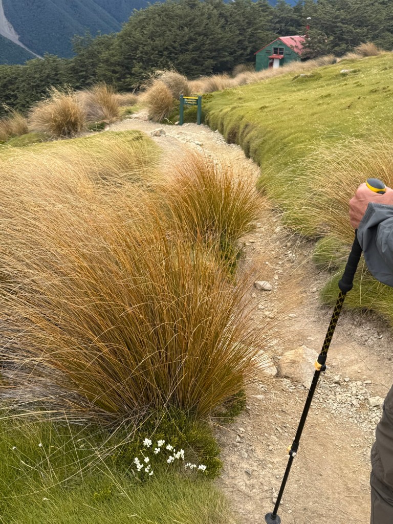 It wasn’t our most scenic day on the South Island — the weather saw to that — but there was something very peaceful about having the mountain mostly to ourselves, in the mist, working through all twenty-nine of those switchbacks without anyone to compare notes with. The whole circuit took us the better part of the day.